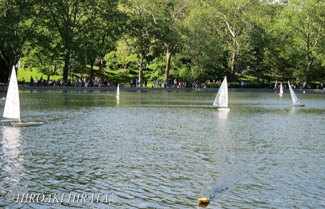 パーク内の大きな池、ヨットやボートが走り回っています。